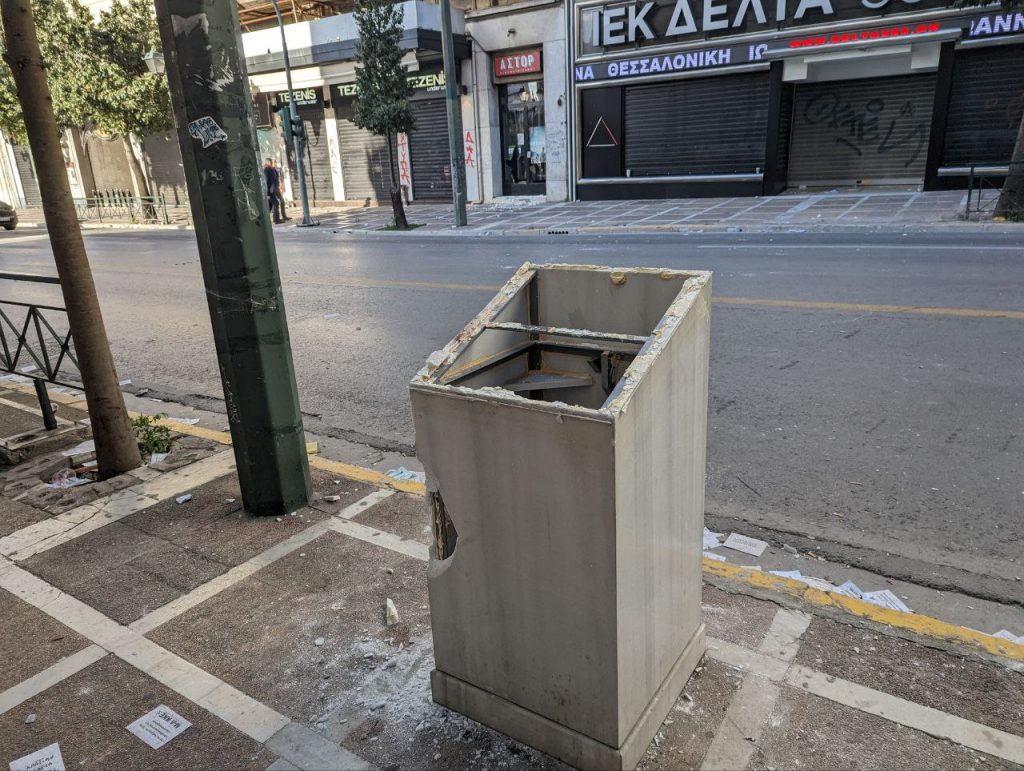 Άγνωστοι κατέστρεψαν την μαρμάρινη πλακέτα η οποία είναι αφιερωμένη στα θύματα της τραγωδίας της Marfin στην οδό Σταδίου, στο περιθώριο της μαζικής διαδήλωσης στο κέντρο της Αθήνας για την σιδηροδρομική τραγωδία στα Τέμπη.
