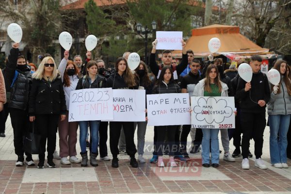 Η μαθητική κοινότητα των Καλαβρύτων, σε μια συμβολική κίνηση, συγκεντρώθηκε σήμερα στην κεντρική πλατεία της πόλης και απέτισε φόρο τιμής στα θύματα των Τεμπών.