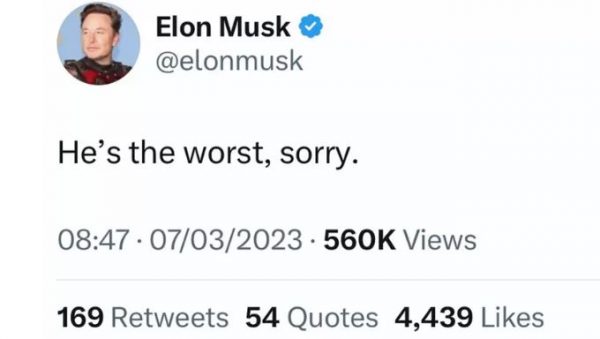 Ο Έλον Μασκ στη συνέχεια διέγραψε το tweet και με νέα του ανάρτηση στο Twitter ζήτησε συγγνώμη από τον Χάλι.