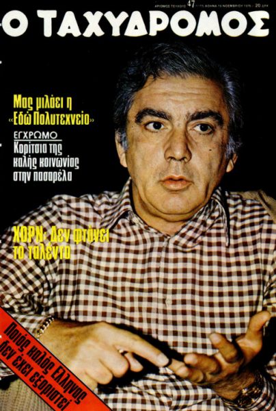 *Αποσπάσματα από συνέντευξη που είχε παραχωρήσει ο Δημήτρης Χορν στον «Ταχυδρόμο» και στον Μπάμπη Κομνηνό το 1976. Η συνέντευξη είχε δημοσιευτεί στο υπ’ αριθμόν 47 τεύχος του «Ταχυδρόμου», που είχε κυκλοφορήσει στις 18 Νοεμβρίου 1976.