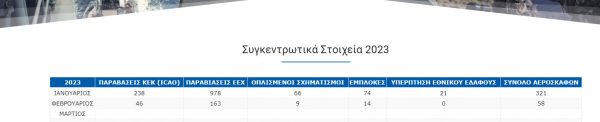 Το Δεκέμβριο του 2022 πραγματοποιήθηκαν 1.153 παραβιάσεις εκ των οποίων οι 18 ήταν υπερπτήσεις, από σύνολο 305 τουρκικών αεροσκαφών. Με το κόστος για την Αθήνα να υπολογίζεται πάνω από 2,2 εκατ. ευρώ. Συνολικά το 2022 πραγματοποιήθηκαν 11.256 παραβιάσεις εκ των οποίων οι 235 υπερπτήσεις. Το 2023 τον Ιανουάριο είχαμε 978 παραβιάσεις, το Φεβρουάριο 163 και το Μάρτιο μηδέν.