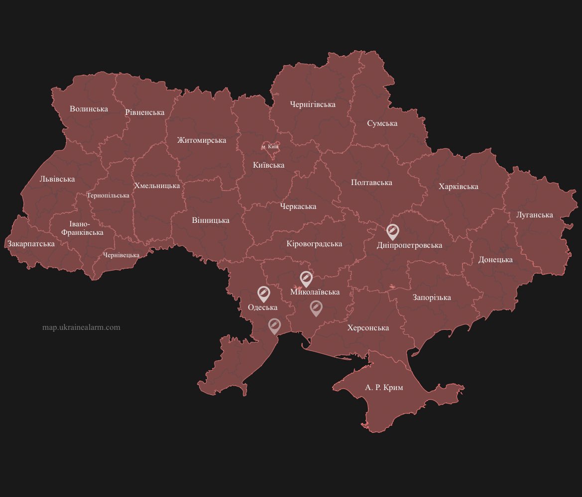 Στην περιφέρεια της Οδησσού (νότια), στη Μαύρη Θάλασσα, ο αξιωματούχος Μαξίμ Μαρτσένκο ανέφερε πως «πύραυλοι έπληξαν την περιφερειακή ενεργειακή υποδομή και προκάλεσαν ζημιές σε κτίρια κατοικιών», μιλώντας για «μαζικό πυραυλικό πλήγμα».