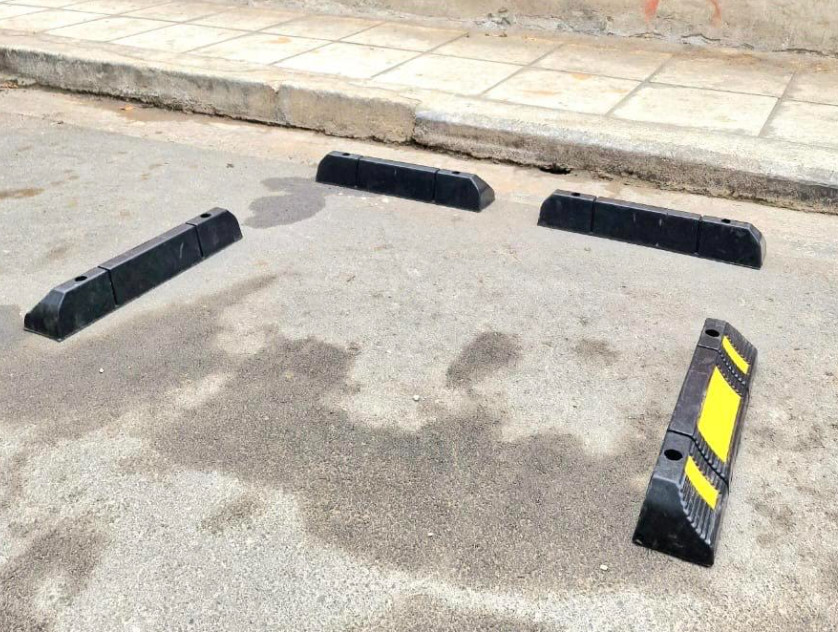 Τα ειδικά αυτά πλαίσια, κατασκευασμένα από υψηλής ποιότητας ανακυκλωμένο λάστιχο και πλαστικό, τοποθετούνται περιμετρικά των κάδων, προκειμένου να εξασφαλιστεί η οριοθέτησή τους. Με αυτά, ο κάδος παραμένει σε σταθερή θέση και στη σωστή απόσταση από παρκαρισμένα αυτοκίνητα, χωρίς να μπορεί να μετακινηθεί από σημείο σε σημείο, δημιουργώντας αυθαίρετες θέσεις πάρκινγκ και εμποδίζοντας τη διέλευση των πεζών.