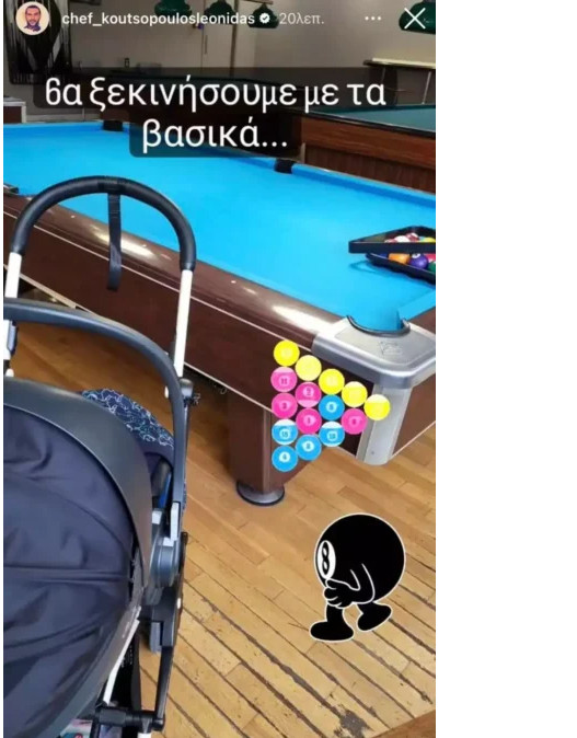 Ο νέος μπαμπάς, ανήρτησε ένα στιγμιότυπο στον προσωπικό του λογαριασμό στο Instagram, όπου τον βλέπουμε να βρίσκεται σε μια αίθουσα με μπιλιάρδο, ενώ δίπλα του έχει το καρότσι με τον γιο του.