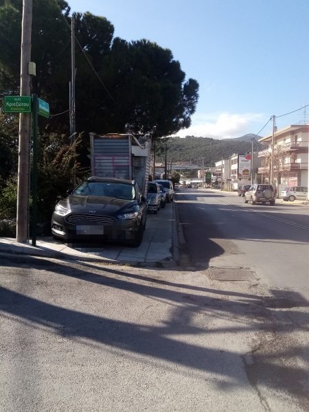 Λίγο, πιο πάνω, στη Κλεισθένους, στη φωτογραφία βλέπετε παρκαρισμένα στη σειρά αυτοκίνητα πάνω σε ένα πεζοδρόμιο που φυσικά πλέον δεν επιτελεί το ρόλο της κατασκευής του. Όσοι επιχειρήσουν να περπατήσουν σε αυτό το σημείο, θα αναγκαστούν να κατέβουν στο πολυσύχναστο δρόμο με τα οχήματα να περνούν ξυστά δίπλα τους.