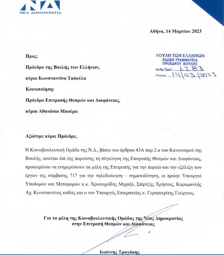 Σύμφωνα με γαλάζιες πηγές η παρουσία και του Χρυσοχοΐδη κρίνεται απαραίτητη καθώς βασικό αντικείμενο είναι η εξέταση της περιβόητης σύμβασης «717» για την τηλεδιοίκηση, η οποία ξεκίνησε με υπογραφή Χρυσοχοΐδη, φτάνοντας στο σήμερα που παραμένει μερικώς υλοποιημένη.