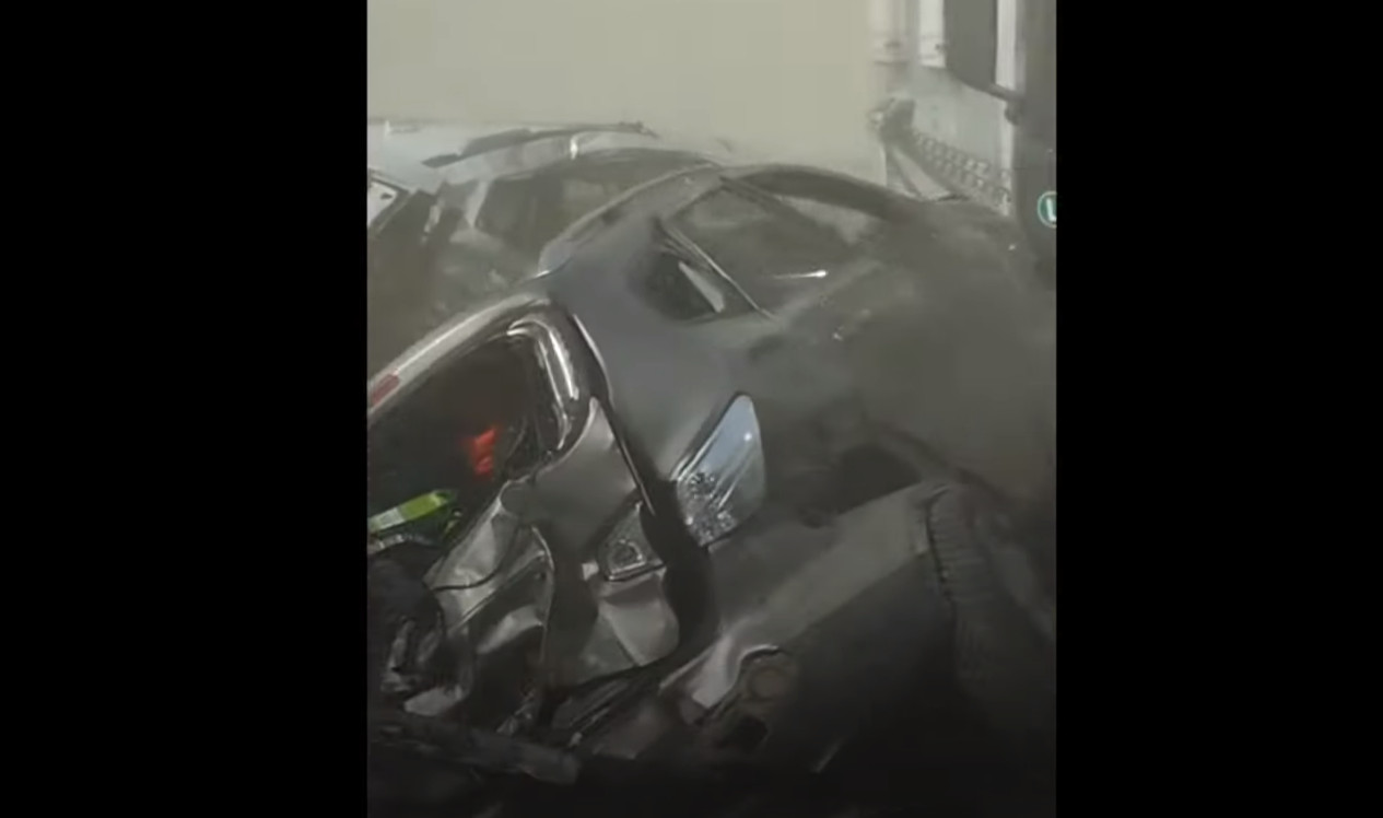 Στο βίντεο από τη στιγμή που ένα από τα εμπλεκόμενα οχήματα πέφτει πάνω στα υπόλοιπα αποτυπώνεται το μέγεθος της καραμπόλας.