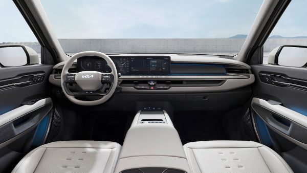 Στο εσωτερικό, κυριαρχεί η ενιαία μεγάλη οθόνη που φιλοξενεί τις ενδείξεις του ψηφιακού πίνακα οργάνων και του infotainment στα πρότυπα του EV6 και ελάχιστους φυσικούς διακόπτες να παρεπιδημούν κάτω από την «κεντρική οθόνη» για την ένταση του ήχου αλλά και τις βασικές λειτουργίες του κλιματισμού.