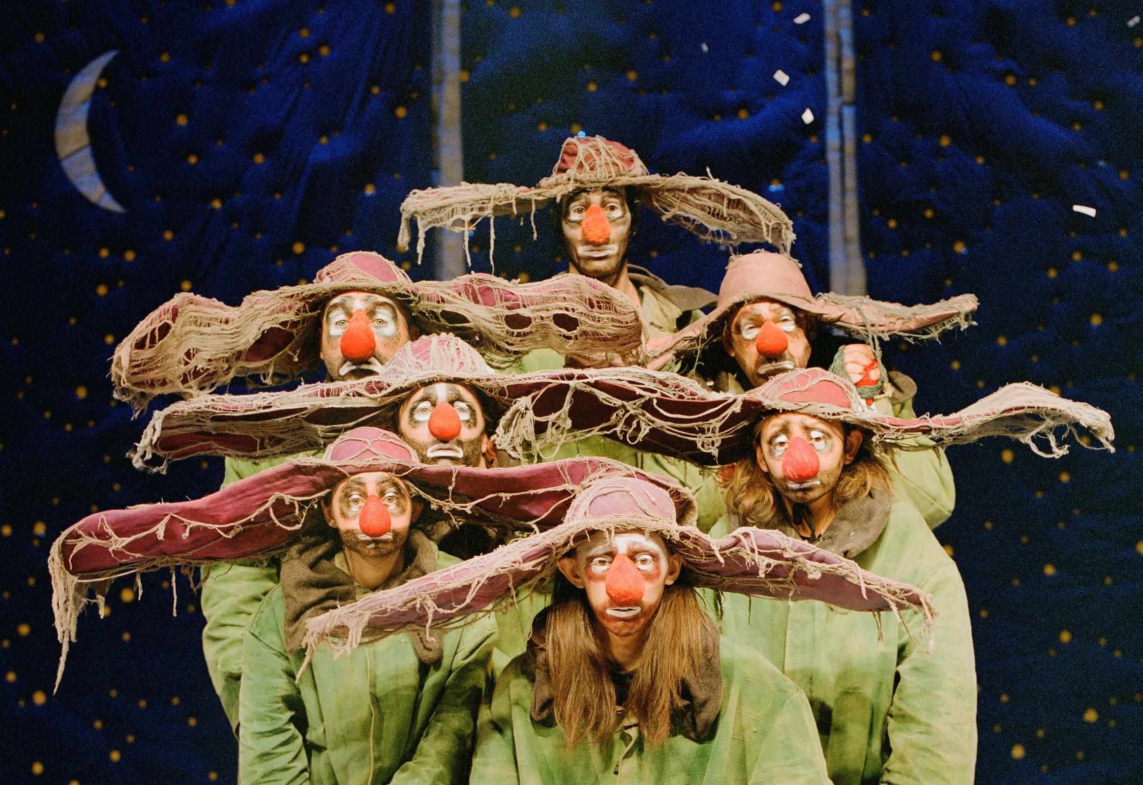 Πλοία που ταξιδεύουν σε θάλασσες από εκτυφλωτική ομίχλη, γιγάντιοι ιστοί αράχνης τυλίγουν το θέατρο – και με τη βοήθεια του κοινού, ομπρέλες στροβιλίζουν στον αέρα καταβρέχοντας, φυσαλίδες αιωρούνται, κλόουν ίπτανται κυνηγώντας τες, σκούπες σκουπίζουν μόνες τους, παλτά «ζωντανεύουν» και γίνονται άνθρωποι, μπάλες διογκώνονται πετώντας, ένα «Βόρειο Σέλας» εμφανίζεται σε απόσταση αναπνοής, λαμπερά φεγγάρια και αστέρια πλαισιώνουν έναν απέραντο, νοσταλγικό, νυχτερινό, έναστρο ουρανό!