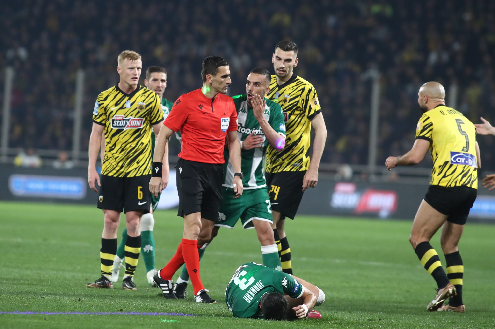Ο Μαυροβούνιος Νίκολα Νταμπάνοβιτς χάρισε δεύτερη κίτρινη κάρτα στον Νόρντιν Αμραμπατ και προκάλεσε την οργή του πάγκου και των παικτών του Παναθηναϊκού!