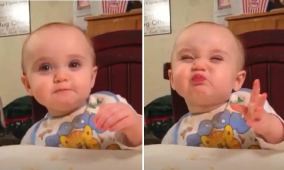 Το κοριτσάκι ξαφνιάζεται και πιθανά ανατριχιάζει από την γλυκόξινη γεύση του και η αντίδρασή του είναι απολαυστική.