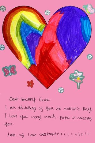 Η Σάρλοτ έγραψε: «Αγαπητή γιαγιά Νταϊάνα, σε σκέφτομαι την ημέρα της μητέρας. Σ’ αγαπώ πάρα πολύ. Στον μπαμπά λείπεις. Με πολλή αγάπη Charlotte xxxxxxxxxxx».