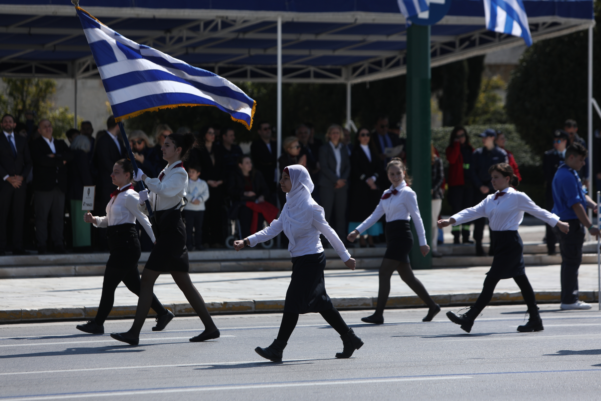 Μαθητές και μαθήτριες από σχολεία της Αθήνας τίμησαν τους ήρωες της Επανάστασης του 1821 και δέχθηκαν το χειροκρότημα από γονείς, συγγενείς, φίλους και πολίτες που βρέθηκαν στο κέντρο της πρωτεύουσας για να παρακολουθήσουν τη μαθητική παρέλαση.