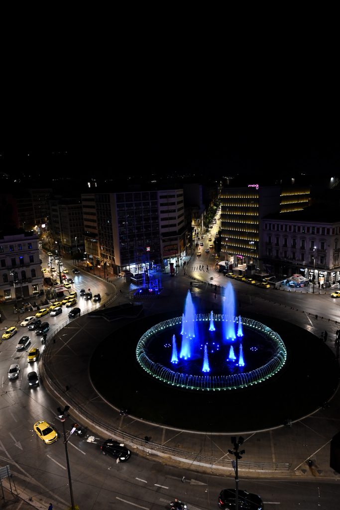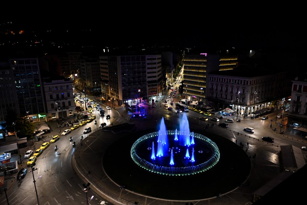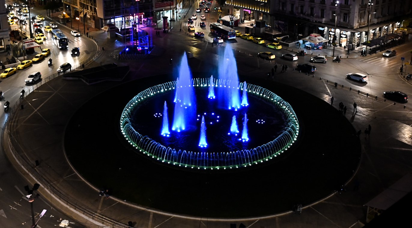 25η Μαρτίου: Το σιντριβάνι της Ομόνοιας «βάφτηκε» στα μπλε