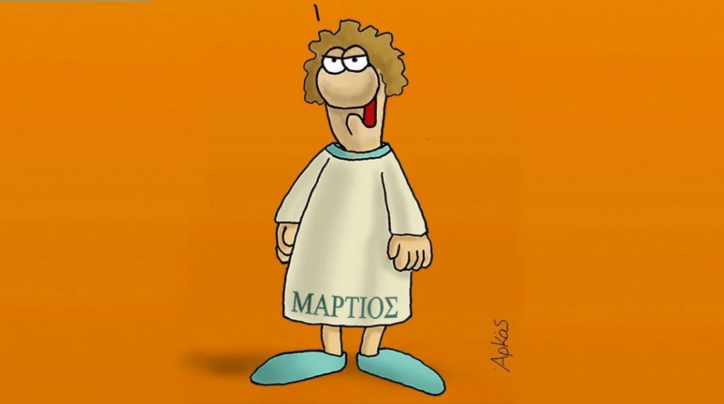 Στο σκίτσο του Αρκά για την αλλαγή ώρας ο μήνας «Μάρτιος» δεν φαίνεται και πολύ χαρούμενος.