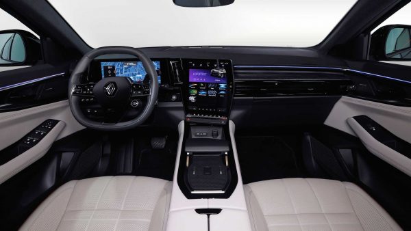 Αναμενόμενα το εσωτερικό του νέου Espace ακολουθεί τις ίδιες προδιαγραφές με το εσωτερικό του Austral με κυρίαρχες δύο οθόνες, 12,3 ιντσών για τον ψηφιακό πίνακα οργάνων και, κάθετου προσανατολισμού 12,0 ιντσών για το infotainment οι οποίες βασίζονται στο λειτουργικό «Open-R». Στις επιλογές συγκαταλέγεται ένα head-up display 9,3 ιντσών καθώς και σύστημα ατμοσφαιρικού φωτισμού 48 χρωμάτων. Το παρών ως επίσης προαιρετική επιλογή δίνει και μια επιβλητικού μεγέθους πανοραμική ηλιοροφή η οποία είναι από τις μεγαλύτερες της αυτοκινητοβιομηχανίας.
