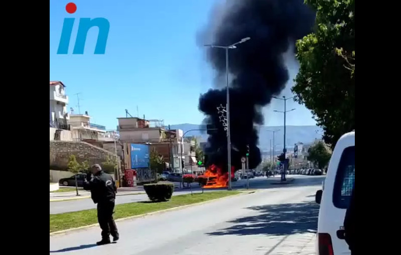 Στις φλόγες τυλίχτηκε το μεσημέρι της Πέμπτη ένα όχημα που βρισκόταν στη μέση του δρόμου στο Αιγάλεω.