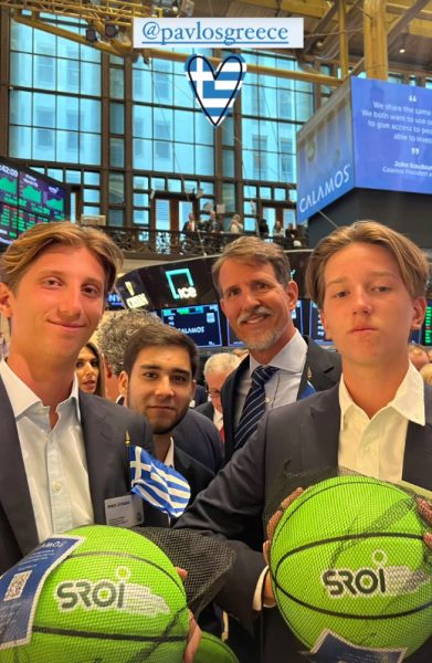 Στη Wall Street για την εκδήλωση βρέθηκε και ο Παύλος Γλύξμπουργκ με τους γιους του, τον 19χρονο Οδυσσέα – Κίμων και τον 14χρονο Αριστείδη – Σταύρο.