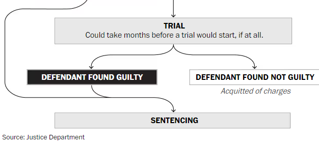 Η συγκεκριμένη υπόθεση αναμένεται να πάρει πολύ καιρό προκειμένου να φτάσει σε δίκη. Ο πρώην πρόεδρος δικαιούται να έχει δικαίωμα στην «ανακάλυψη» – τα στοιχεία που έχουν συγκεντρώσει οι εισαγγελείς κατά την έρευνά τους, συμπεριλαμβανομένων των πρακτικών των ενόρκων, που ενδεχομένως προσφέρουν μια ματιά στις καταθέσεις των μαρτύρων. Και στη συνέχεια, οι δικηγόροι του Τραμπ πιθανότατα θα καταθέσουν προδικαστικές προτάσεις για να απορριφθεί η υπόθεση για νομικούς λόγους πριν καν φτάσει στο σώμα ενόρκων.
