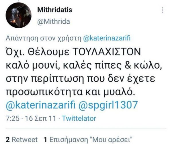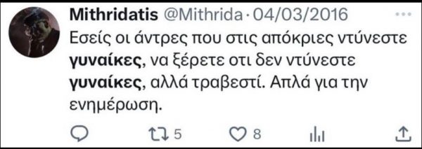 Μεταξύ άλλων, αναφέρει ότι «για τον κ. Τσίπρα και τον ΣΥΡΙΖΑ προφανώς είναι αδιάφορες οι ομοφοβικές και οι χυδαία σεξιστικές αναφορές του Μιθριδάτη», ενώ διερωτάται αν ο Τομέας Δικαιωμάτων του κόμματος θα ζητήσει την αποπομπή του από τα ψηφοδέλτια.