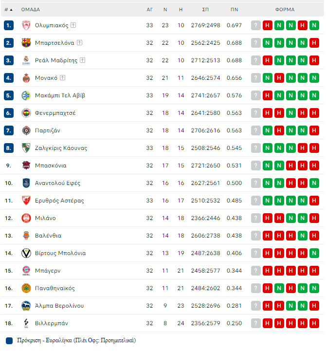 Πλέον η ομάδα του Γιώργου Μπαρτζώκα χρειάζεται είτε ήττες των Μπαρτσελόνα – Ρεάλ Μαδρίτης, είτε νίκη επί της Μπασκόνια το βράδυ της επόμενης Πέμπτης (13/4) στο ΣΕΦ για να ολοκληρώσει την κανονική περίοδο της EuroLeague στην κορυφή.