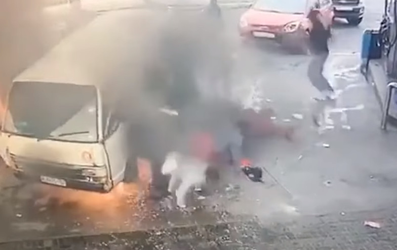 Άλλοι σώθηκαν την τελευταία στιγμή πριν εκραγεί το μπροστινό μέρος του οχήματος, με μαύρο καπνό να βγαίνει από αυτό.