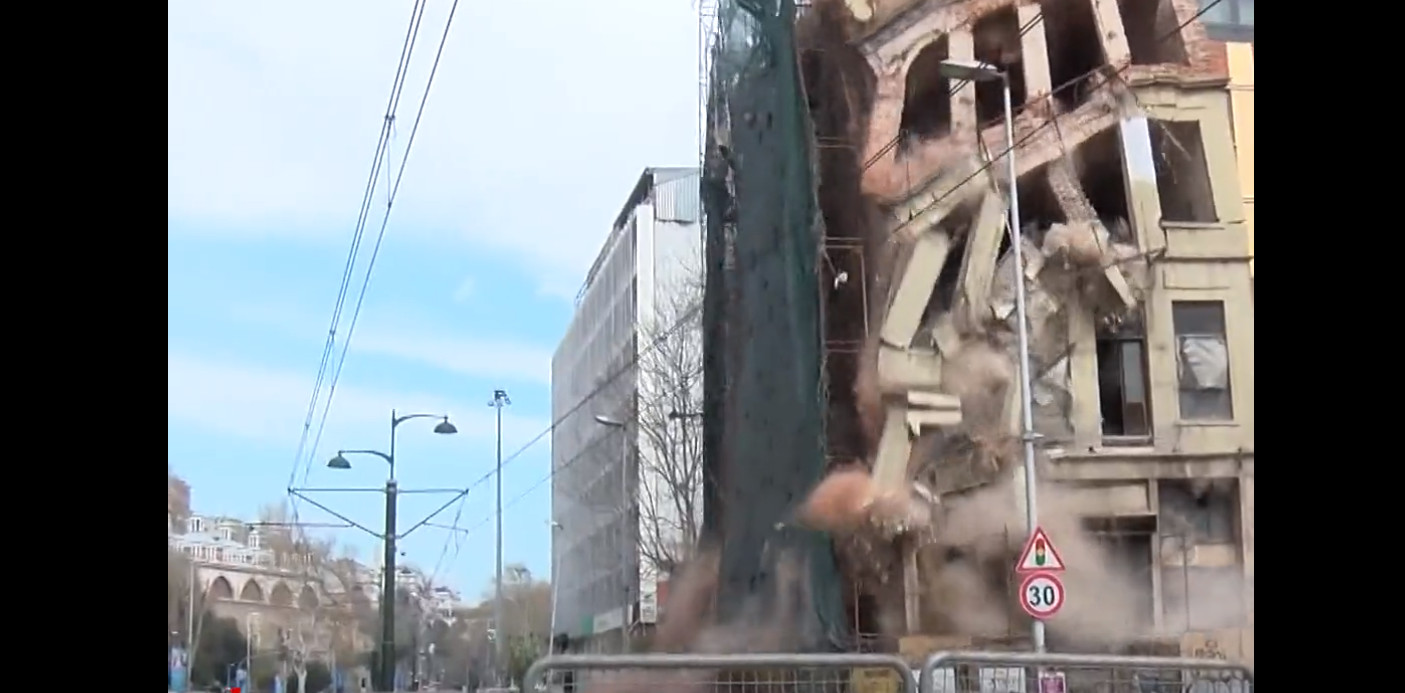 Karaköy’de yıkılma riski bulunan ve çevresinde güvenlik önlemi alınan 5 katlı tarihi metruk bina tamamen çöktü. pic.twitter.com/iBTCPp3QCj