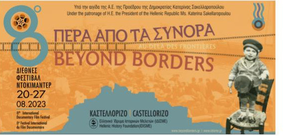 Η 8η έκδοση του Διεθνούς Φεστιβάλ Ντοκιμαντέρ Καστελλορίζου «Πέρα από τα Σύνορα» θα πραγματοποιηθεί για ακόμα μια χρονιά την τελευταία εβδομάδα του Αυγούστου, στις 20-27 /08 2023, στην «Άκρη του Αιγαίου», στο πανέμορφο και ακριτικό Καστελλόριζο, μετατρέποντας το νησί για 8η συνεχόμενη χρονιά σε ένα κινηματογραφικό και πολιτιστικό κέντρο διεθνούς εμβέλειας.