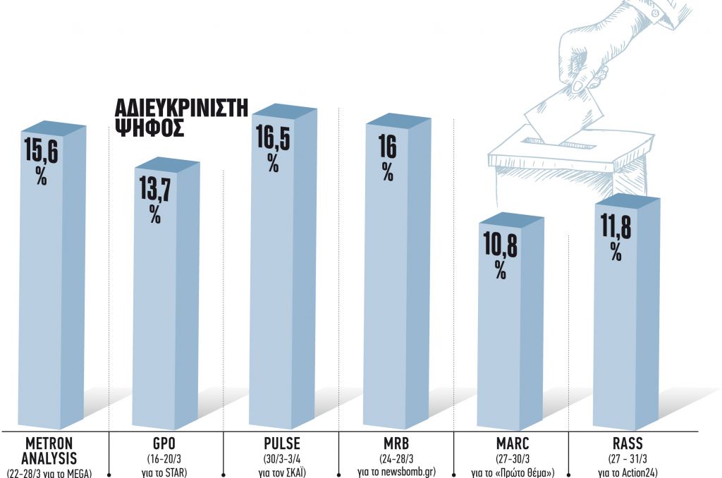 Η αδιευκρίνιστη και για τον Αντώνη Παπαργύρη, διευθυντή ερευνών της GPO, ενισχύθηκε με τα Τέμπη ενώ εσχάτως έχει αρχίσει να απομειώνεται (αρχικά ήταν 8,5, με το δυστύχημα πήγε στο 12,5 και τώρα κάθεται στο 11,5).