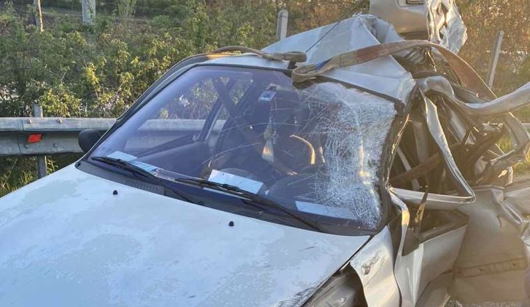 Το τροχαίο σημειώθηκε στο ρεύμα προς Λάρισα, ενώ το Ι.Χ. όπως φαίνεται και στις φωτογραφίες του trikalavoice.gr διαλύθηκε εντελώς.