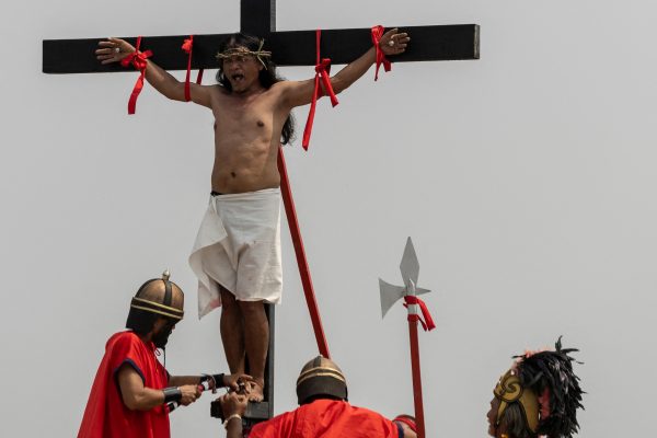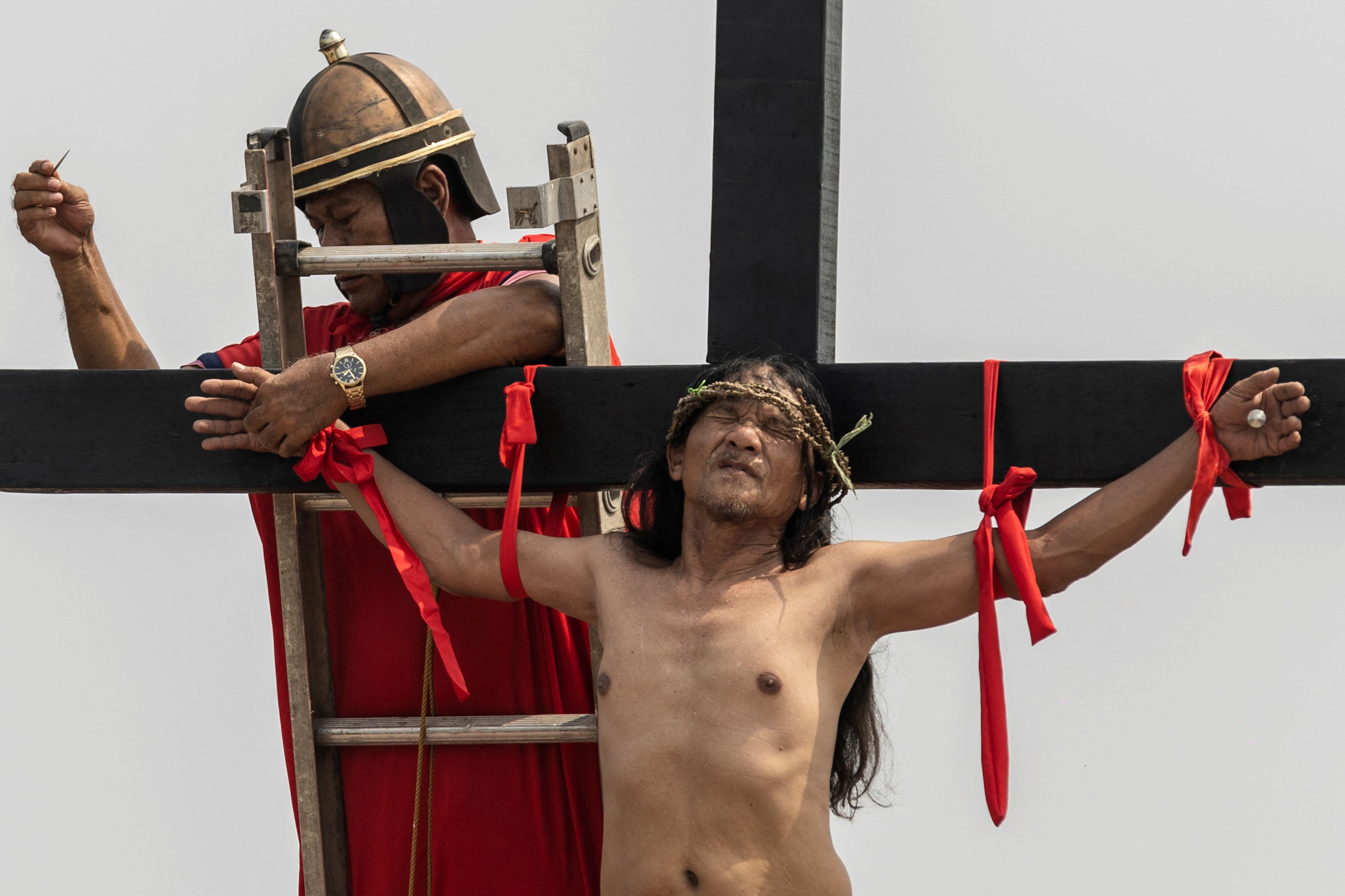 Πριν από τη σταύρωσή τους σε έναν σκονισμένο λόφο, ο Ruben Enaje και οι άλλοι πιστοί, φορώντας αγκαθωτά στεφάνια από κλαδιά, μετέφεραν τους ξύλινους σταυρούς στις πλάτες τους για περισσότερο από ένα χιλιόμετρο μέσα στη ζέστη.