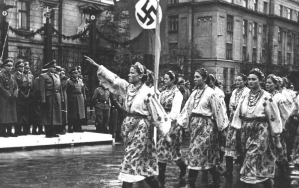 Ουκρανές παρελαύνουν μπροστά από Γερμανούς επισήμους (Wikipedia)