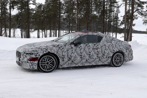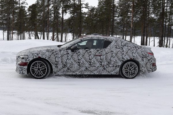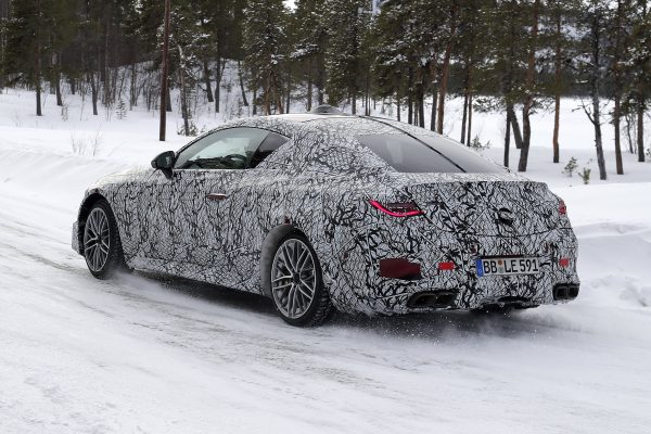 Εν προκειμένω, ο φωτογραφικός φακός εντόπισε την κορυφαία coupe έκδοση της CLE με την φροντίδα του Affalterbach και τον αριθμό «63» να πραγματοποιεί δοκιμές εξέλιξης με φόντο τα παγωμένα τοπία του σκανδιναβικού βορρά. Μια προσεκτική παρατήρηση στο καμουφλάζ αποκαλύπτει ότι το συγκεκριμένο πρωτότυπο διαθέτει αυτοκόλλητα με την ένδειξη «υψηλή τάση», στοιχείο που με τη σειρά του προδίδει ότι στην αθέατη πλευρά του φιλοξενείται ένα plug-in υβριδικό σύνολο.