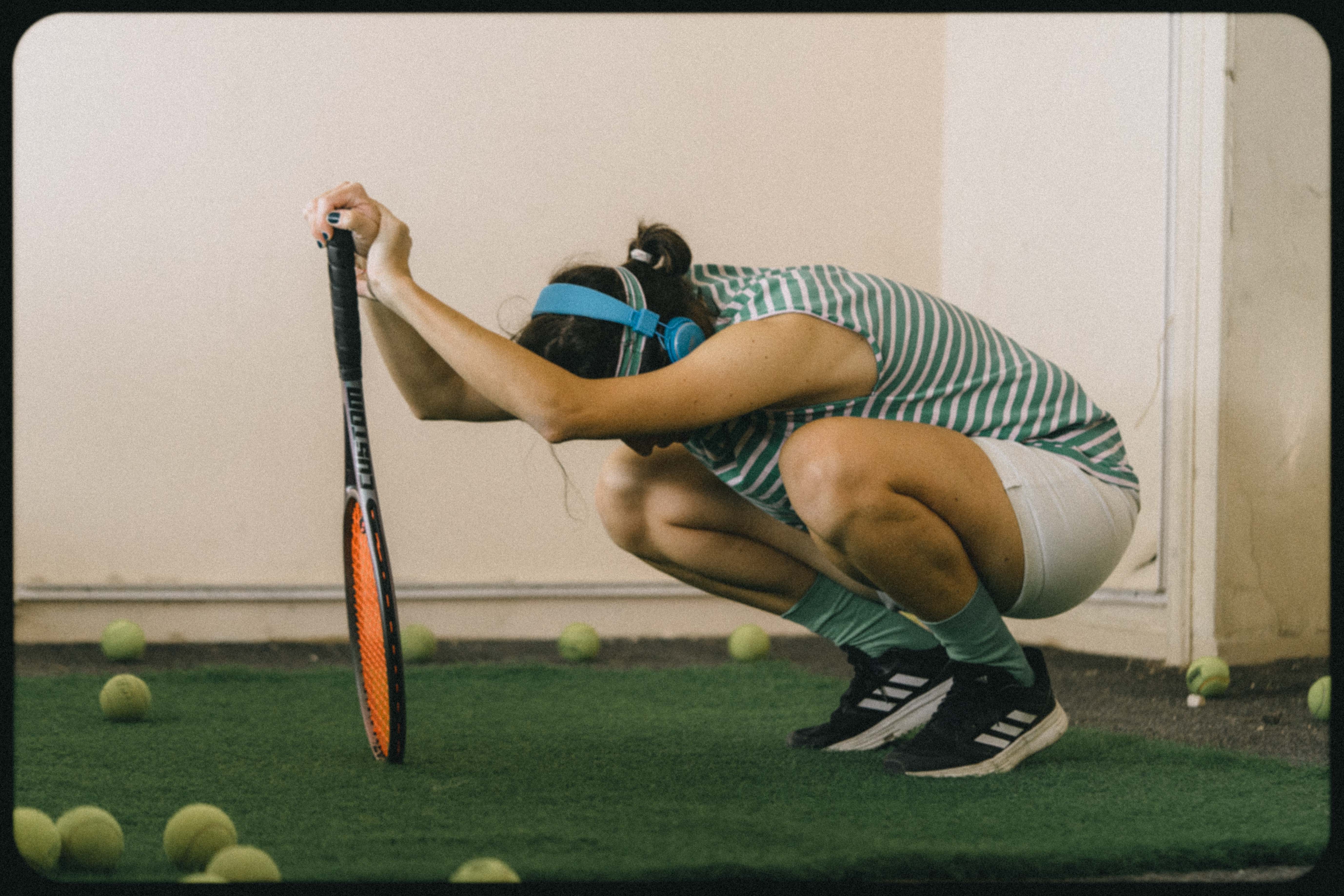 Κάπου αλλού μέσα στο ίδιο ξενοδοχείο, σε κάποιο γκρεμισμένο δωμάτιο – μάλλον μονόκλινο – μια κοπέλα παίζει τέννις στον τοίχο. Μόνη.