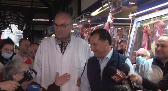 Με πολύ γλυκά λόγια μίλησε μια ηλικιωμένη κυρία στον Άδωνι Γεωργιάδη, με τον οποίο συναντήθηκε το πρωί της Μεγάλης Τρίτης στη Βαρβάκειο.