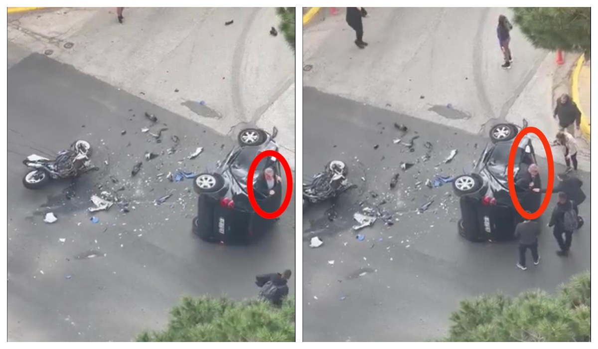 Την ίδια στιγμή ακούγεται η φωνή μιας γυναίκας που φωνάζει «αιμορραγεί ο άνθρωπος, θα πεθάνει, να γυρίσουμε το αυτοκίνητο» βλέποντας τον οδηγό της μηχανής σοβαρά τραυματισμένο μέσα στο Smart.