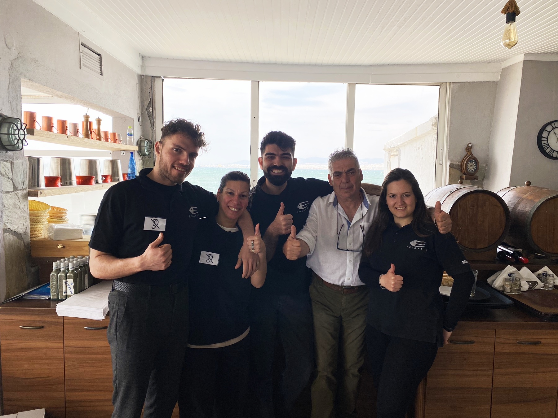 «Έχουμε μάθει ήδη πολλές λέξεις στη νοηματική με την καθημερινή συναναστροφή μας με τα παιδιά που έχουν προβλήματα ακοής, σερβιτόρους και μάγειρες, και ξέρουμε και μικρές φράσεις, κυρίως αυτές που αφορούν στις παραγγελίες στο τραπέζι και τα προϊόντα μας. Όλοι μας ξέρουμε- ακόμη και οι πιο νέοι στο χώρο, ότι οι ενωμένες παλάμες και το κούνημα του αντίχειρα παράλληλα με το έδαφος, είναι το ψάρι», επισημαίνει ο κ. Γιάντσης.
