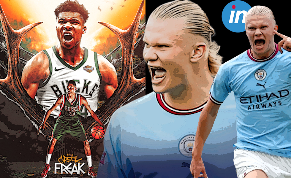 Κάποιος που οι αθλητικές προδιαγραφές του παραπέμπουν μόνο σε ένα «αντίγραφο» ή και «πρωτότυπο»: Τον Γιάννη Αντετοκούνμπο του ΝΒΑ. Ότι κάνει ο δικός μας Giannis στην αντίπερα όχθη του Ατλαντικού, κάνει και ο Χάαλαντ με τον ύμνο του Champions League. Τρομοκρατεί τους αντιπάλους του.