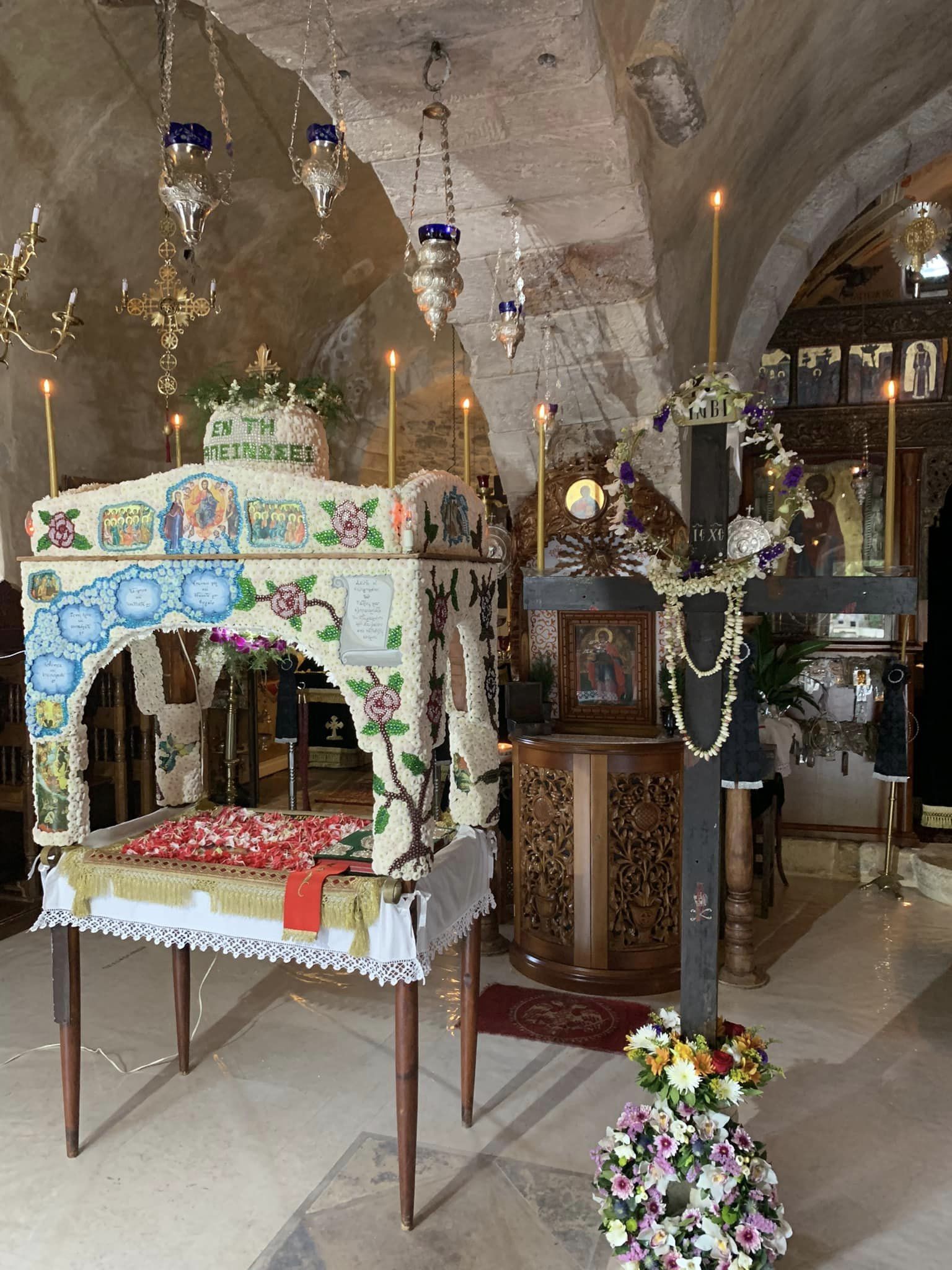 Το φετινό θέμα στολισμού του επιταφίου αντλήθηκε από την εικόνα της Δευτέρας Παρουσίας η οποία φυλάσσεται στη Μονή μας!».
