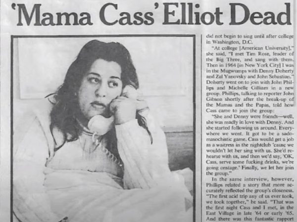 Γεννημένη ως Έλεν Ναόμι Κοέν, η Mama Cass ήταν μόλις 32 ετών τον Ιούλιο του 1974. Παρά την ηλικία της, η νεαρή γυναίκα από τη Βαλτιμόρη είχε ήδη γίνει ένα παγκόσμιο είδωλο της αντικουλτούρας της δεκαετίας του 1960 και ένα έμβλημα του κινήματος των χίπις, ως αποτέλεσμα του ρόλου της τραγουδίστριας των Mamas & the Papas, του συγκροτήματος που ήταν υπεύθυνο για επιτυχίες όπως το «California Dreamin’» και το «Monday Monday».