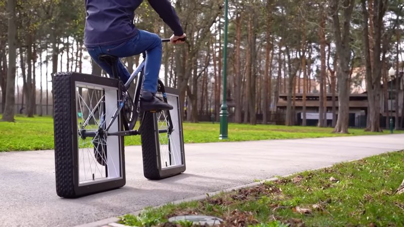 Κοιτάζοντάς το σε κάνει να αναρωτιέσαι πώς γίνεται να κινηθεί ένα ποδήλατο με τετράγωνες ρόδες (αν μπορούμε να τις πούμε ρόδες). Κι όμως γίνεται.