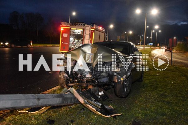 Αυτοκίνητο που εκινείτο επί της βοηθητικής οδού με κατεύθυνση προς Πύργο, εξετράπη υπό αδιευκρίνιστες συνθήκες της πορείας του και προσέκρουσε σε κολώνα ηλεκτροφωτισμού (φωτογραφίες, κάτω).