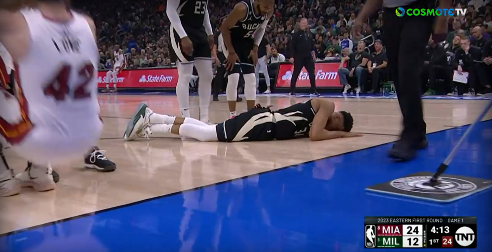 Ο σούπερ σταρ των Μπακς είχε μια άσχημη πτώση στο παρκέ με τη μέση στο πρώτο δωδεκάλεπτο του πρώτου αγώνα της σειράς με τους Χιτ.
