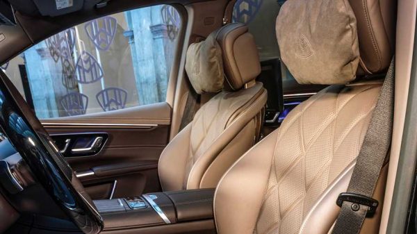 Τα τελευταία φυσικά εφοδιάζονται με σύστημα θέρμανσης/κλιματισμού το οποίο «ανεβαίνει» μέχρι τους ώμους και λειτουργία μασάζ. Ανάμεσα στα καθίσματα παρεπιδημεί μια γενναιόδωρη κεντρική κονσόλα με αποθηκευτικούς χώρους, ποτηροθήκες, θύρες USB-C και χειριστήρια για τα περιφερειακά συστήματα. Tην εξοπλιστική εικόνα του πίσω καθίσματος συμπληρώνει η παρουσία οθονών 11,6 ιντσών στα προσκέφαλα του πίσω καθίσματος που συνεργάζονται με το MBUX αλλά και ένα αφαιρούμενο mini bar. Στο μπροστινό τμήμα, αυτονόητα δεσπόζει η Hyperscreen στην νεότερη εκδοχή της μαζί με την τελευταία έκδοση του MBUX σε διαμόρφωση Maybach που σημαίνει νέες επιλογές σε ό,τι αφορά το στυλ διαμόρφωσης των ενδείξεων και των επιλογών.