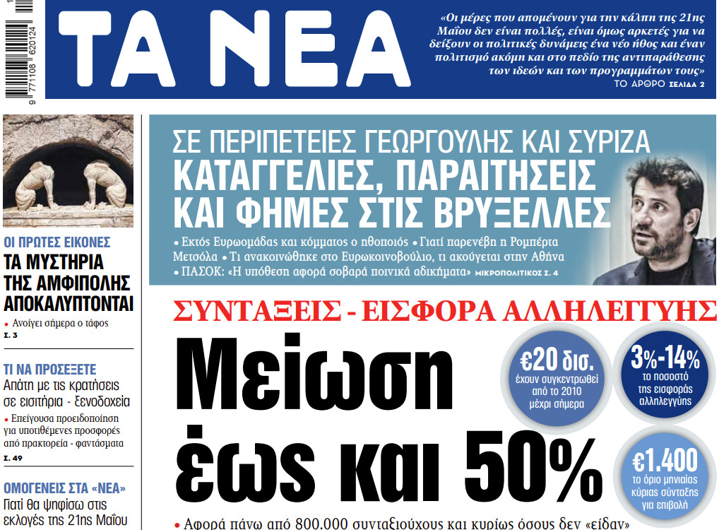Στα ΝΕΑ της Τρίτης: Μείωση έως και 50%