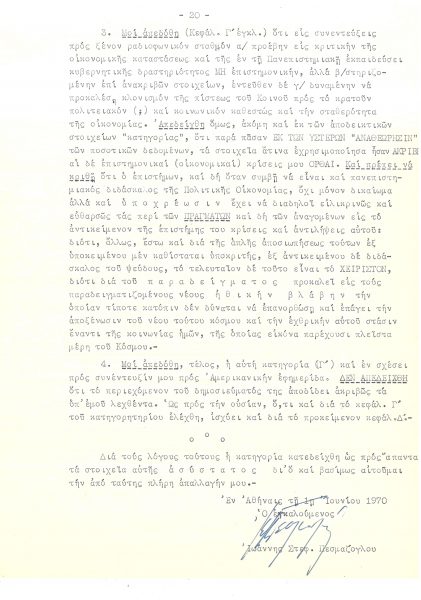 Το διεθνές κύρος του οικονομολόγου και οι τοποθετήσεις του τον είχαν μετατρέψει σε ιδιαίτερα ενοχλητικό αντίπαλο του καθεστώτος όπως θα φαίνεται και στα τεκμήρια της απόλυσης του που προέρχονται από το Ιστορικό Αρχείο του Πανεπιστημίου Αθηνών.