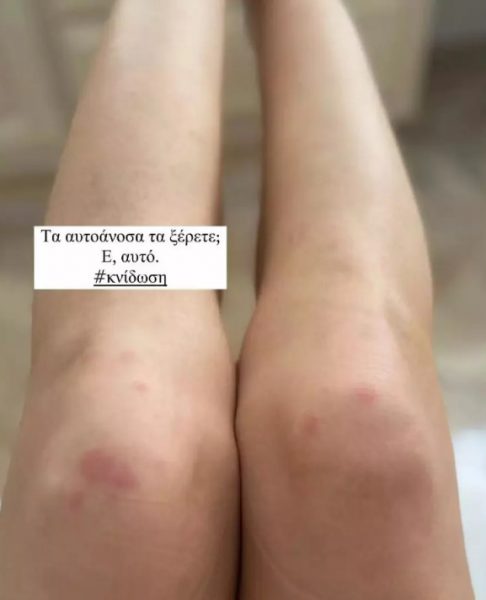 Παράλληλα, δημοσίευσε μια φωτογραφία στα stories της, όπου έδειξε τα σημάδια στα πόδια της.