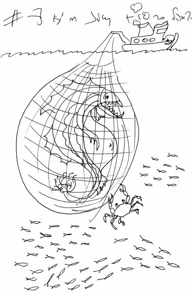 Λοιπόν, και στην προηγούμενη έκθεση, το θέμα μου ήταν βιωματικό, εκφρασμένο με διαφορετικό τρόπο. Εκεί το θέμα ήταν η επιβίωση, τώρα, η επιβίωση με τη σύντροφό μου σε συνθήκες εγκλεισμού. Η ιστορία άλλωστε με τις κατσαρίδες ξεκίνησε από τα πολεμικά πλοία του ναυτικού, που κάποτε υπηρέτησα ως αξιωματικός και ήταν γεμάτα από δαύτες, μέχρι που τελικά τις αποθεώνω με μεγαλείο ιερατικό σε μία άλλου τύπου «μεταμόρφωση», απ’ ότι στον Κάφκα, όπου ο Γκρέκορ Σάμσα μεταμορφώνεται σε ένα απεχθές ζωύφιο απέναντι στη δυσανεξία του σε μια κοινωνία που τελικά τον σκοτώνει.