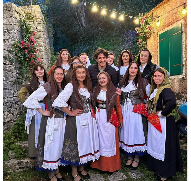 Μάλιστα ο Χριστόφορος Παπακαλιάτης ποζάρει μαζί με τη Μαρία Καβογιάννη, τη «Μαρία» της σειράς, την ώρα που γυρίζει μία σκηνή με τον παραδοσιακό πολιτιστικό σύλλογο Παξών για τις ανάγκες του Maestro. «Παραδοσιακό πανηγύρι με την Μαρία στους Παξούς!!»