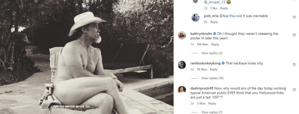 Η γυμνή φωτογραφία του έχει λάβει μέχρι στιγμές περισσότερα από 150.000 likes στο Instagram. Τα σχόλια πάντως ήταν θετικά με αρκετούς φαν να επαινούν το σώμα του ηθοποιού.